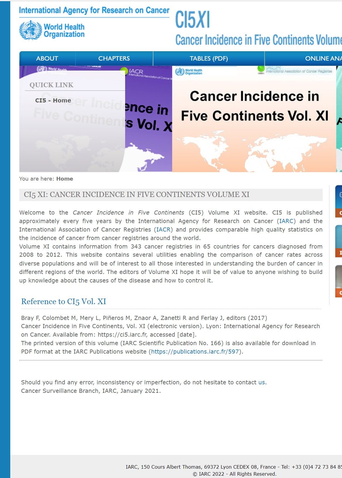 1 janvier 2022Données internationales, Publicationsadmin Données Données de l’International Agency for Research on Cancer Cancer incidence in Five Continents Volume XI Éditeur International Agency for Research on Cancer (IARC)