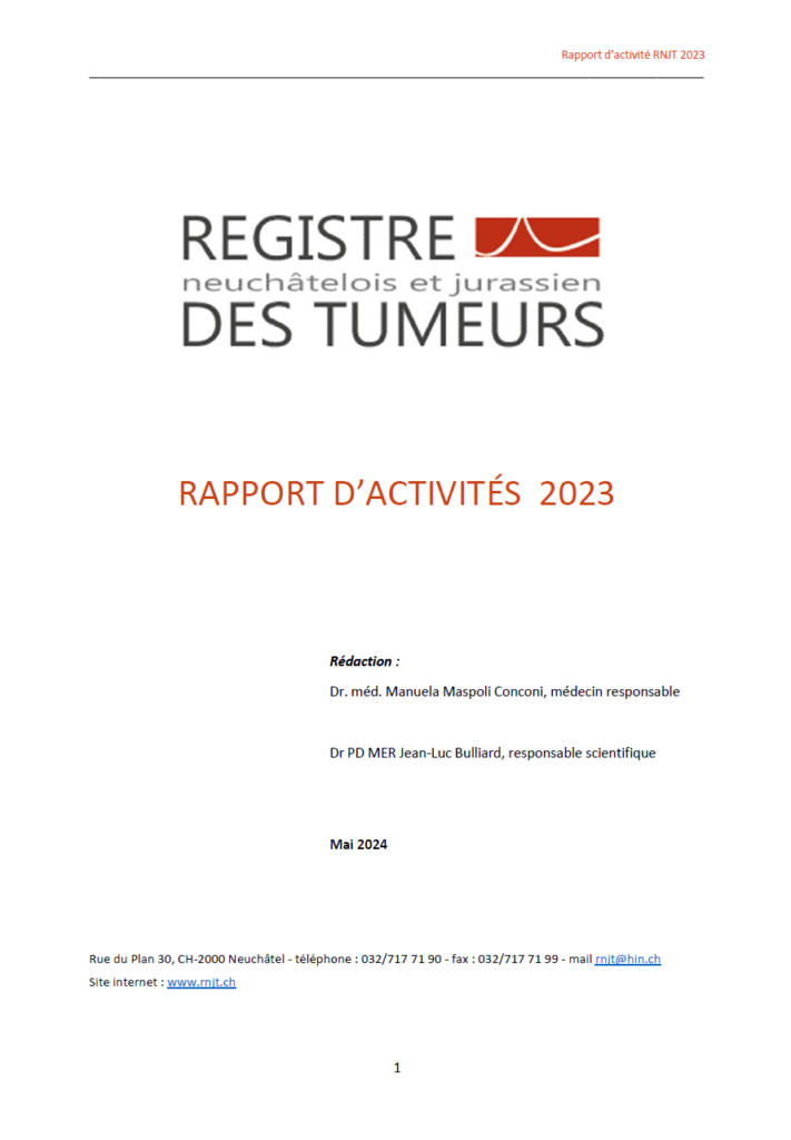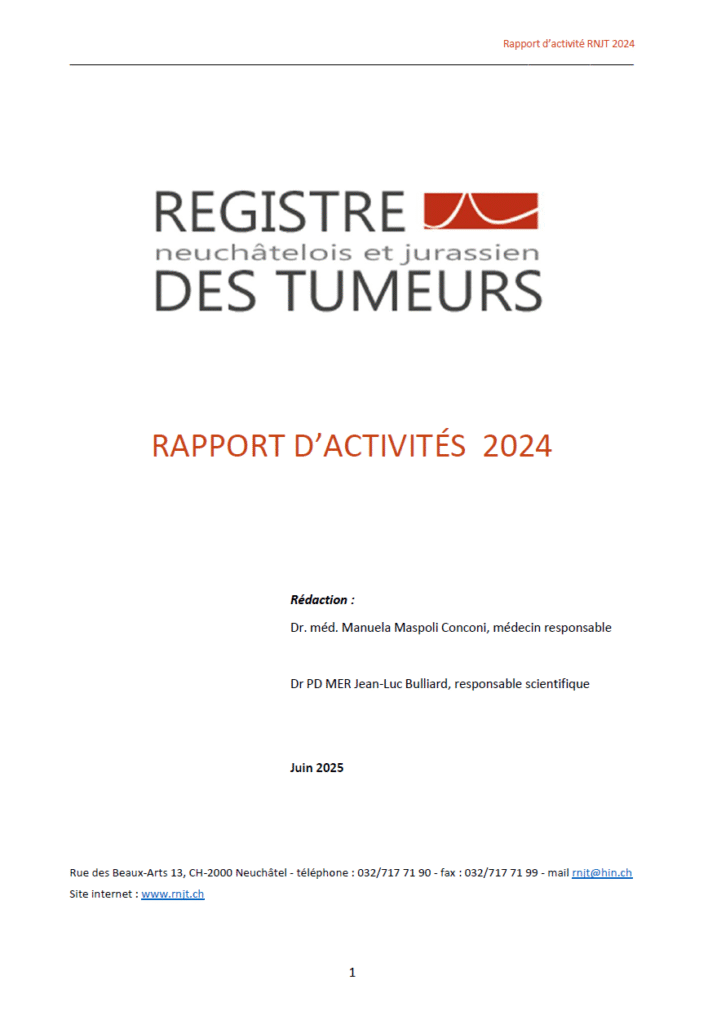 Les données du RNJT sont mises à disposition des autorités sanitaires cantonales, de l’Organe national pour l’enregistrement du cancers (ONEC) et de l’Office fédérale de la statistique (OFS) pour l’établissement des rapports de santé sur le cancer, pour l’évaluation des programmes de dépistages et plus en général pour la surveillance des tumeurs dans la population des cantons de Neuchâtel et du Jura. La supervision scientifique et le data management sont confiés à Unisanté Lausanne en particulier à Dr. Ès Sc. Jean-Luc Bulliard, PD MER co-chef de secteur Maladies Chroniques au Département Epidémiologie et système de santé et de M. Simon Germann, chargé de recherche.