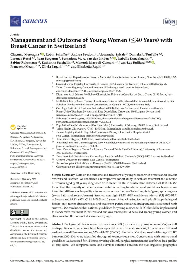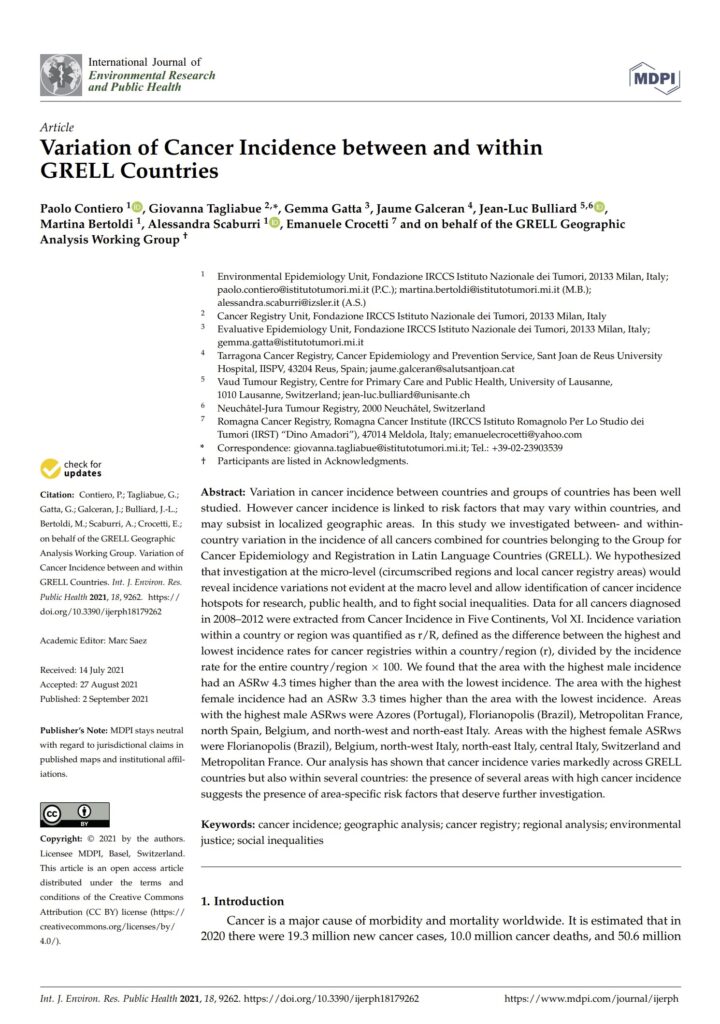 Publications dans desrevues expertisées A cohort analysis of residential randon exposure and melanoma incidence in Switzerland Consulter Global survival trends for brain tumors, by histology: analysis of individual records for 556,237 adults diagnosed in 59 countries during 2000–2014 (CONCORD‑3) Consulter Breast cancer and occupation: Non-parametric and parametric net survival analyses among Swiss women (1990–2014) Consulter Estimating 10-year risk of lung and breast cancer by occupation in Switzerland Consulter Occupational Factors and Socioeconomic Differences in Breast Cancer Risk and Stage at Diagnosis in Swiss Working Women Consulter World-wide trends in net survival from pancreatic cancer by morphological sub-type: An analysis of 1,258,329 adults diagnosed in 58 countries during 2000–2014 (CONCORD‑3) Consulter Worldwide trends in population-based survival for children, adolescents, and young adults diagnosed with leukaemia, by subtype, during 2000–14 (CONCORD‑3): analysis of individual data from 258 cancer registries in 61 countries Consulter Does the morphology of cutaneous melanoma help toexplain the international differences in survival? Resultsfrom 1 578 482 adults diagnosed during 2000–2014 in 59countries (CONCORD‑3) Consulter Management and Outcome of Young Women (≤40 Years) with Breast Cancer in Switzerland Consulter Research on occupational diseases in the absence of occupational data: a mixed-method study among cancer registries of Western Switzerland Consulter Potential to Improve Therapy of Chronic Myeloid Leukemia (CML), Especially for Patients with Older Age: Incidence, Mortality, and Survival Rates of Patients with CML in Switzerland from 1995 to 2017 Consulter Variation of Cancer Incidence between and within GRELL Countries Consulter The histology of brain tumors for 67 331 children and 671 085 adults diagnosed in 60 countries during 2000–2014: a global, population-based study (CONCORD‑3) Consulter Trends of incidence, mortality and survival for chronic lymphocytic leukaemia / small lymphocytic lymphoma in Switzerland between 1997 and 2016: a population-based study Consulter